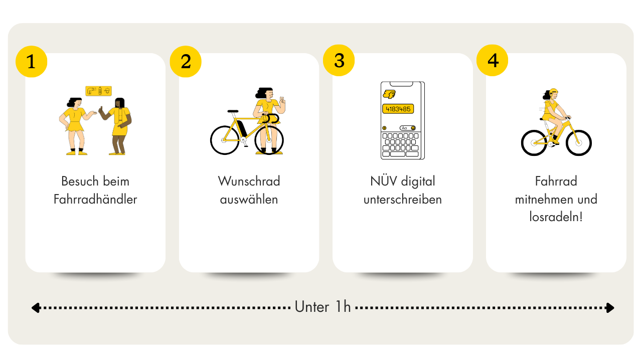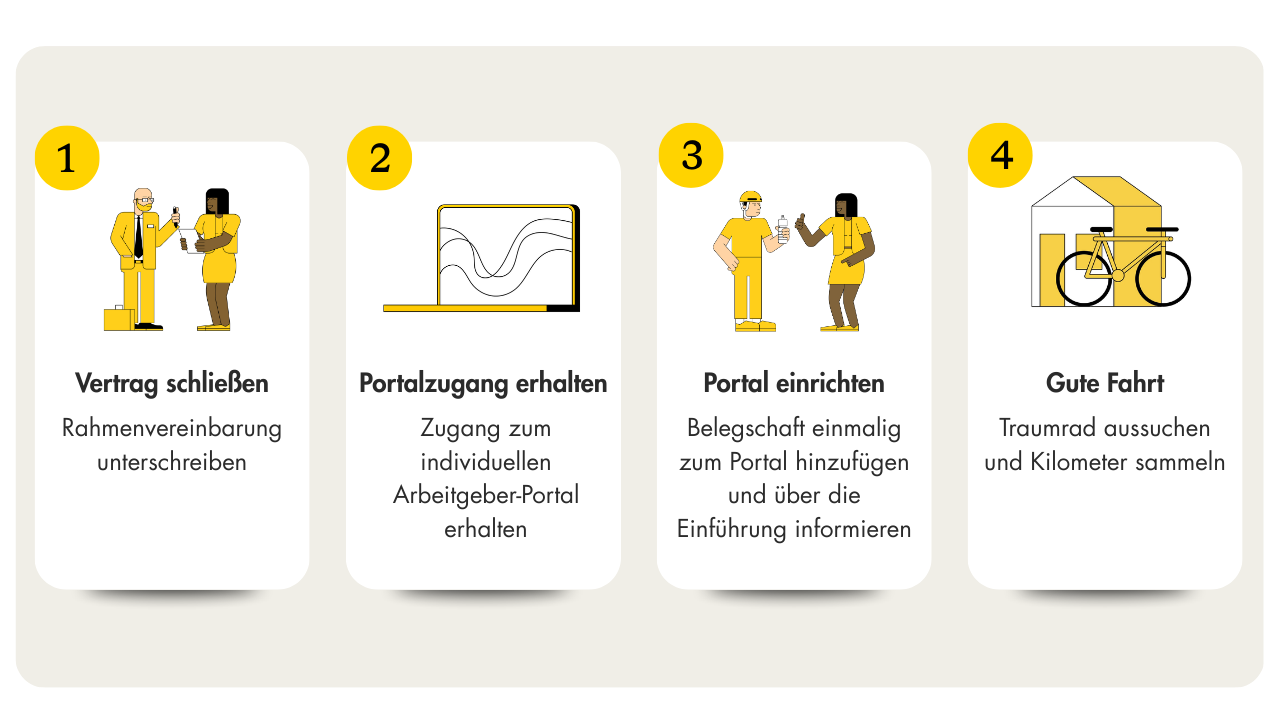 Kurz gesagt: Wir begleiten alle Beteiligten auf dem Weg zum Dienstrad – vom ersten Klick bis zur ersten Fahrt. Und das einfach gemacht.
