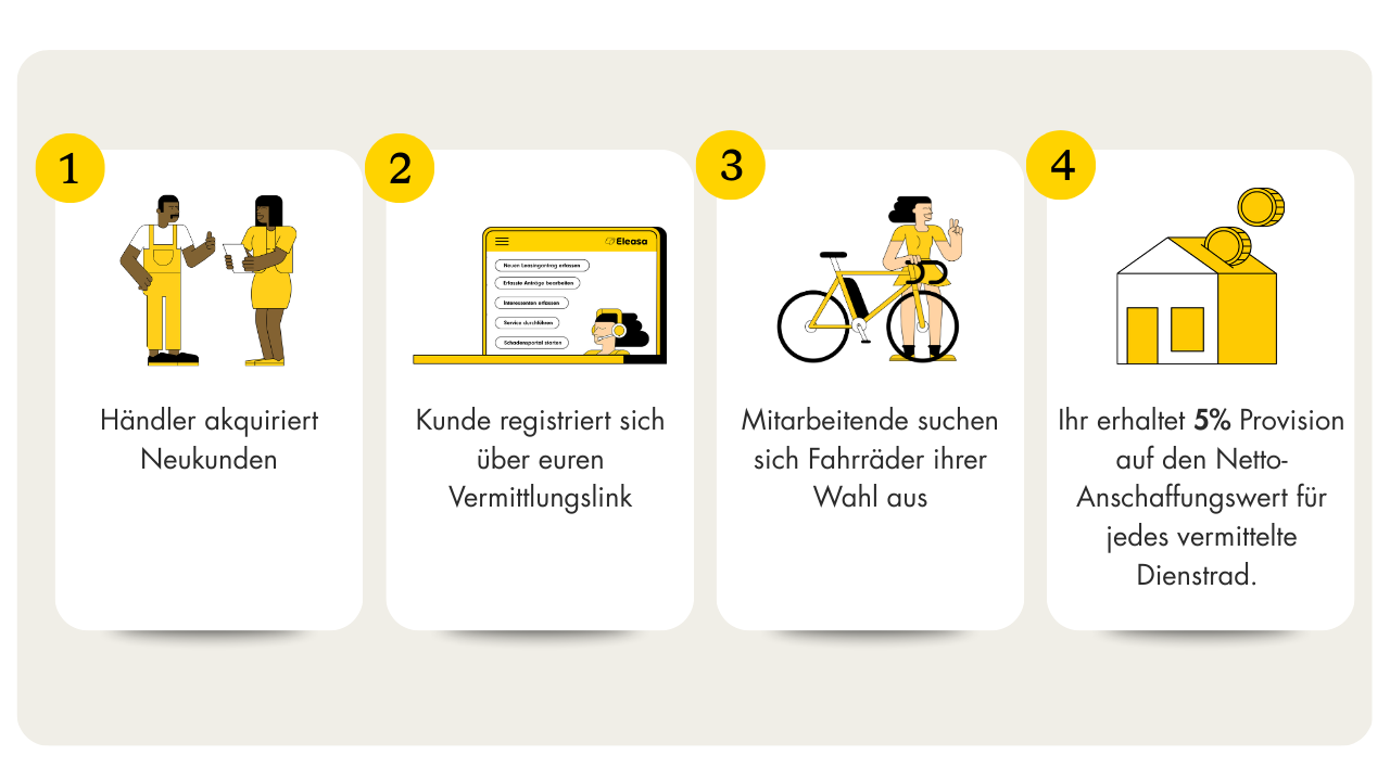 Dienstrad-Leasing mit Eleasa ist unkompliziert, effizient und schnell eingeführt – in nur vier Schritten.