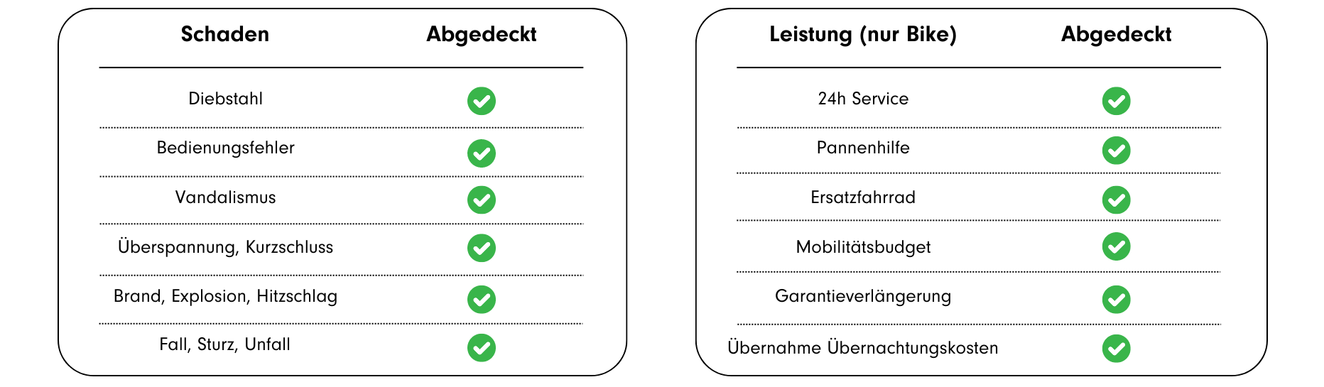 Unseren Rundum-Schutz und unseren ROLAND Bike-Schutzbrief hast du kurz schon kennengelernt. Doch gehen wir ins Detail. Innerhalb des gesamten Leasingzeitraums bist du über unseren inklusiven Service umfassend abgesichert. Sei es ein Sturz, Unfall oder einfach nur Ungeschicklichkeit. Lass dein Fahrrad einfach bei einem unserer Partnerhändler innerhalb kürzester Zeit reparieren. Ohne viel Bürokratie. Dank des ROLAND Bike-Schutzbriefes kannst du sogar unterwegs verschiedenste Serviceleistungen wie dein Mobilitätsbudget oder Ersatzfahrräder in Anspruch nehmen. Klingt das nicht gut?