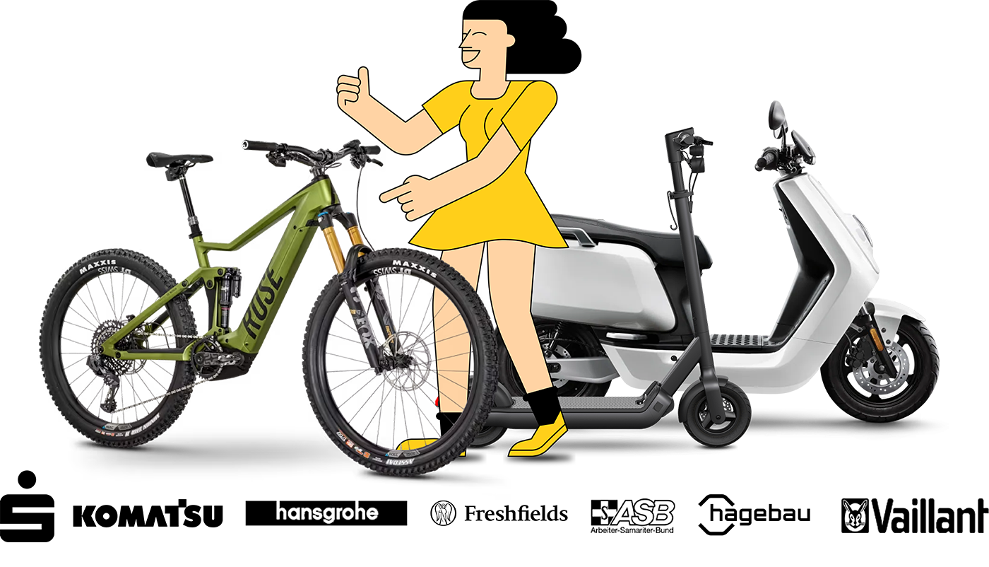 Das bleibt Ihnen und Ihren Mitarbeitenden überlassen. Sie als Arbeitgeber können einen preislichen Rahmen festlegen, in dem sich die Räder, Roller und Scooter befinden sollten. Das z.B. Wunschrad können Ihre Arbeitnehmenden dann ganz einfach in dem Fahrrad-Handel der Wahl oder Online aussuchen.